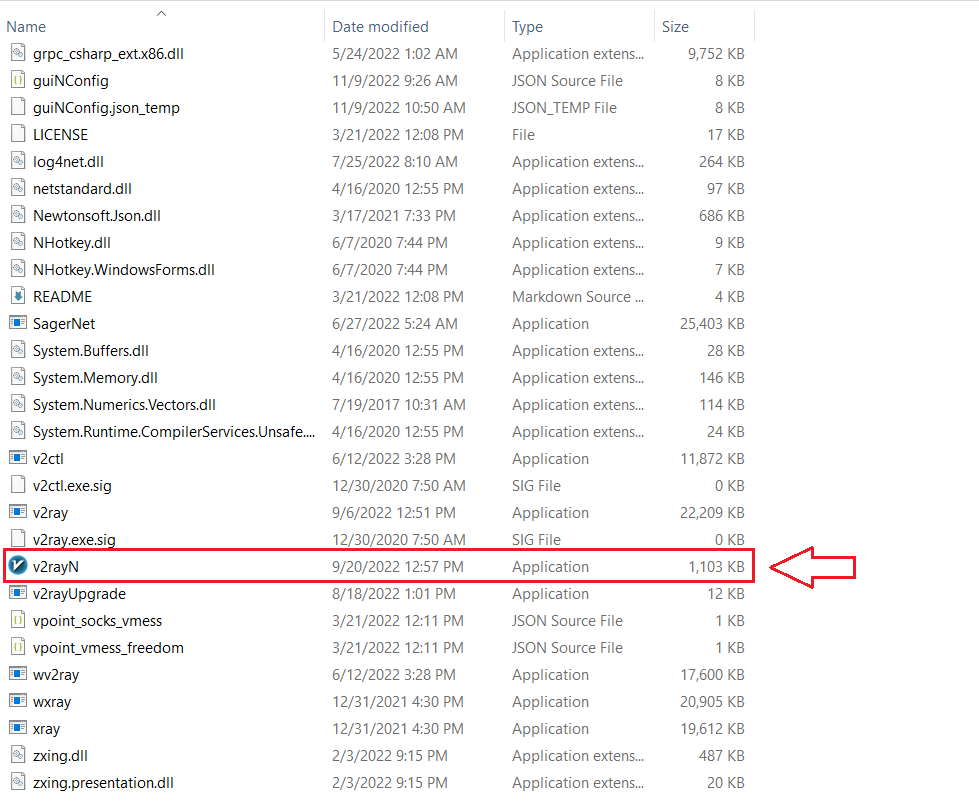 1) پس از دانلود و Extract کردن، وارد پوشه V2RayN شده و مطابق تصویر زیر روی نرم افزار V2rayN کلیک کند. این نرم افزار نیاز به نصب ندارد و با کلیک کردن شما نرم افزار باز میشود.