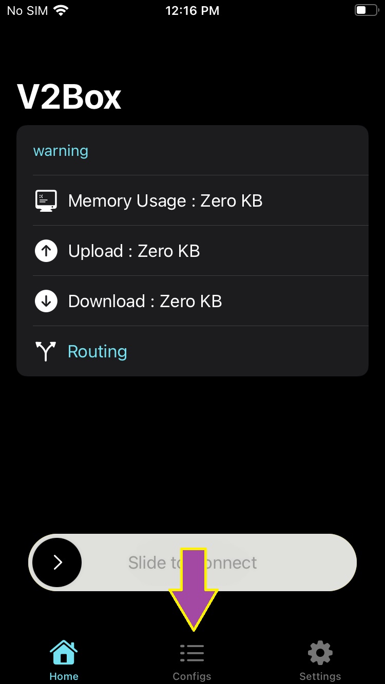 نرم افزار V2box را باز کرده و مطابق فلش تصویر بالا وارد تب Configs می شویم.