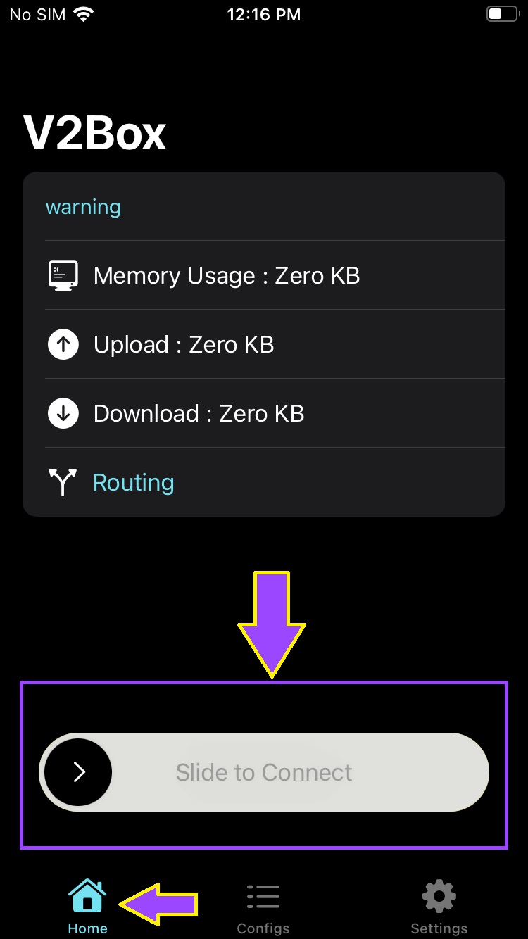 حال برای روشن کردن و اتصال به سرویس به تب Home بازگشته و مانند تصویر بالا اسلاید را به سمت راست میکشیم.
