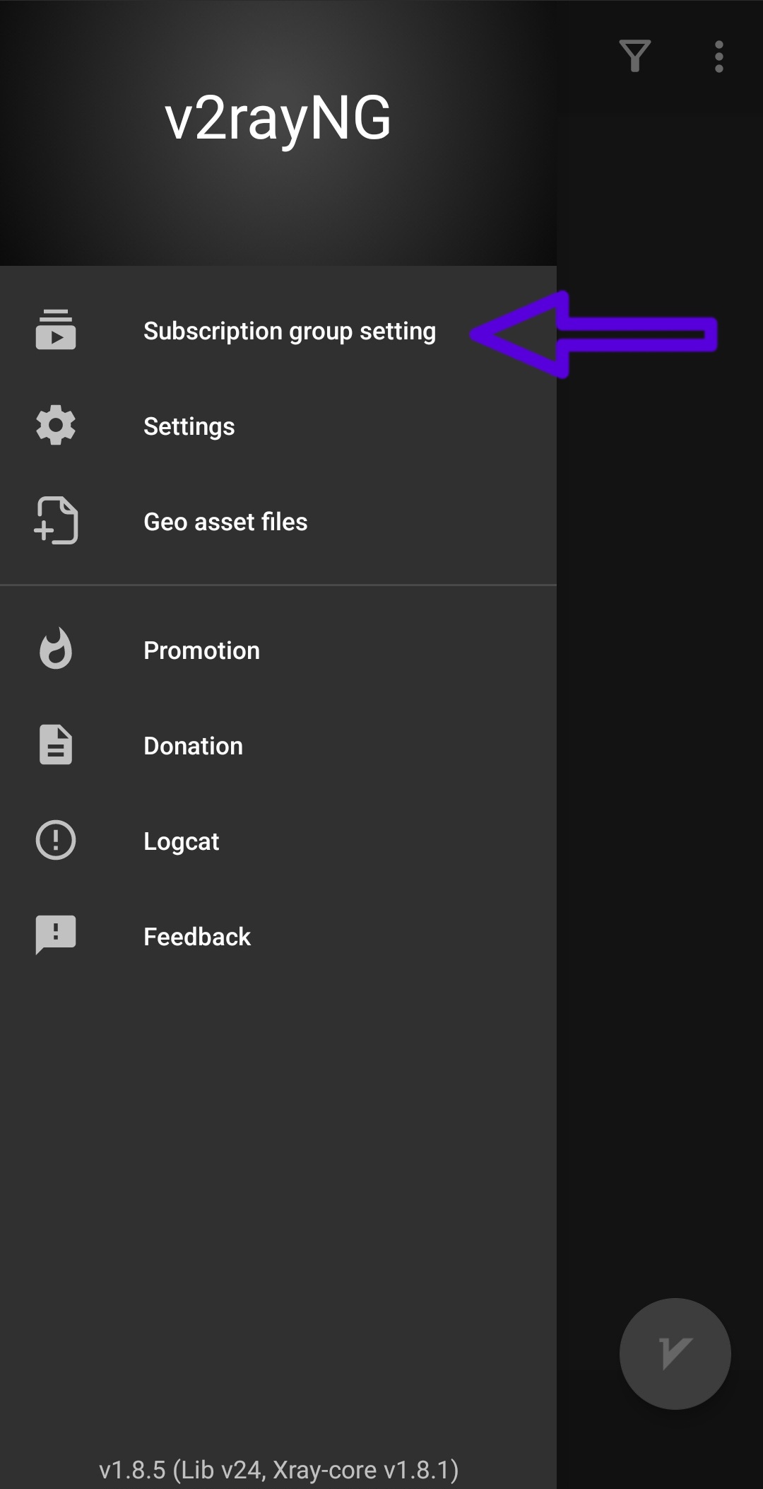 سپس نرم افزار V2rayNG را باز کرده مطابق دستورات زیر پیش می رویم: