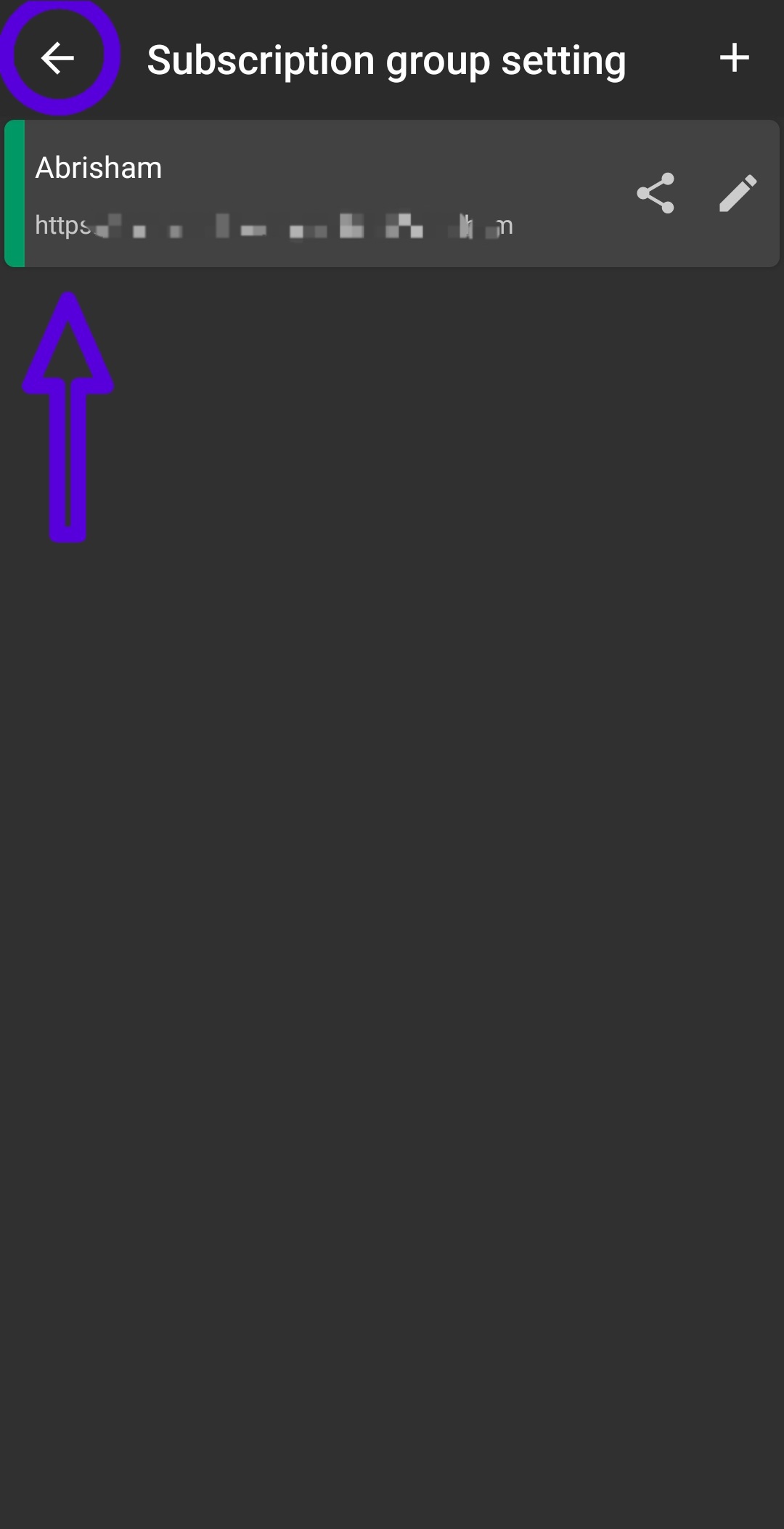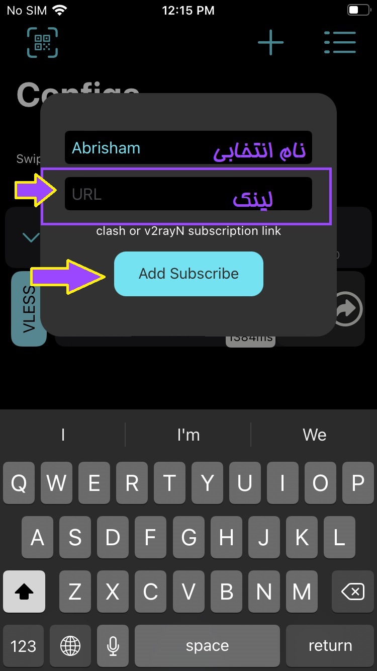 مانند تصویر بالا در کادر باز شده نام را برروی Abrisham قرار می دهیم ، در کادر URL لینک کپی شده در قسمت لینک اشتراک سرویس(مراحل قبل) را Paste(الصاق) می کنیم، سپس بر روی گزینه Add Subscribe کلیک می کنیم تا تنظیمات ذخیره شود.